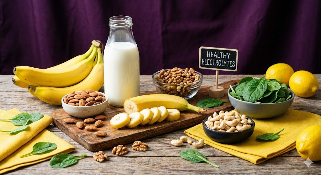 - 전해질 보충: 바나나(칼륨), 우유(칼슘), 견과류(마그네슘) 같은 음식을 자주 먹어주세요.