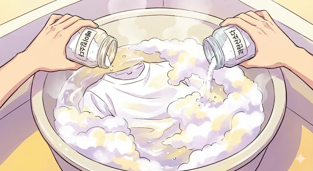 제가 가장 추천하는 방법이에요! 베이킹소다와 과탄산소다를 함께 사용하면 표백 효과가 정말 탁월하거든요.