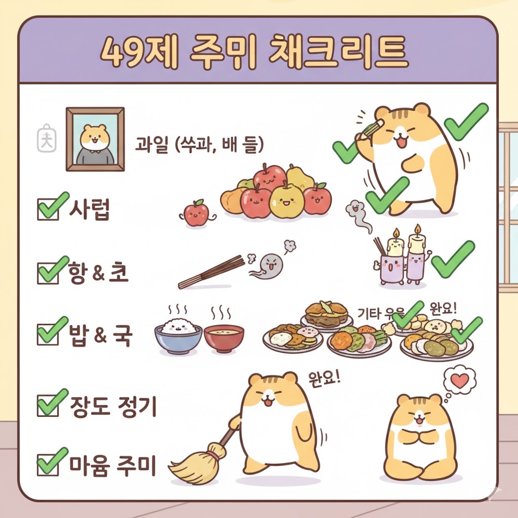 - 정성이 핵심: 완벽한 준비보다는 진심으로 올리는 것이 가장 중요합니다.
