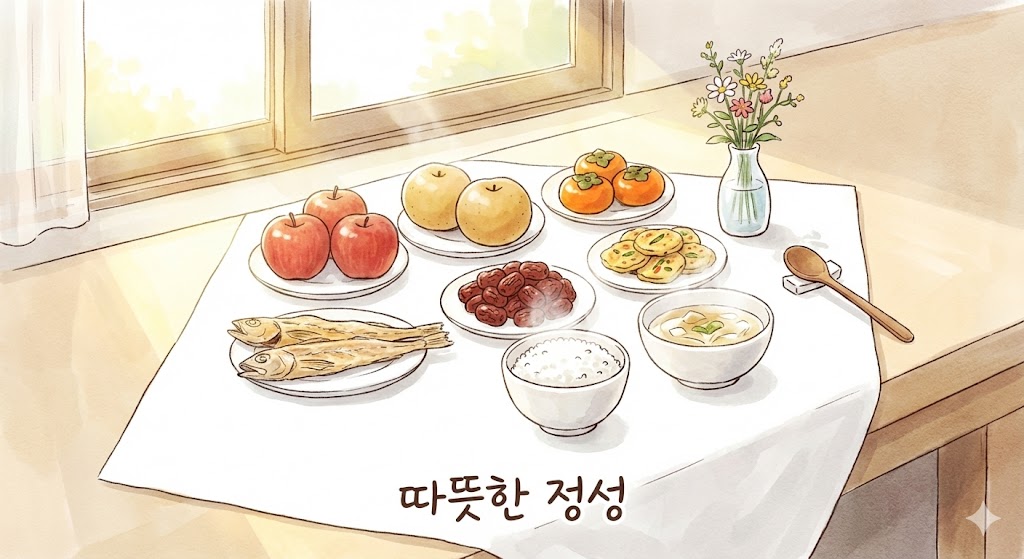 - 음식: 간단하게 준비해도 괜찮으며, 고인이 좋아하던 음식을 올려도 됩니다.